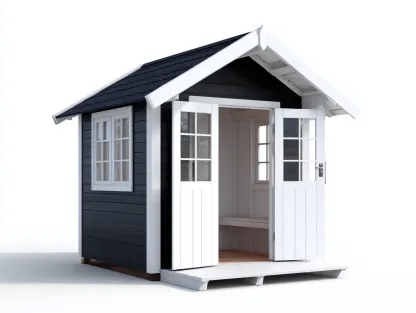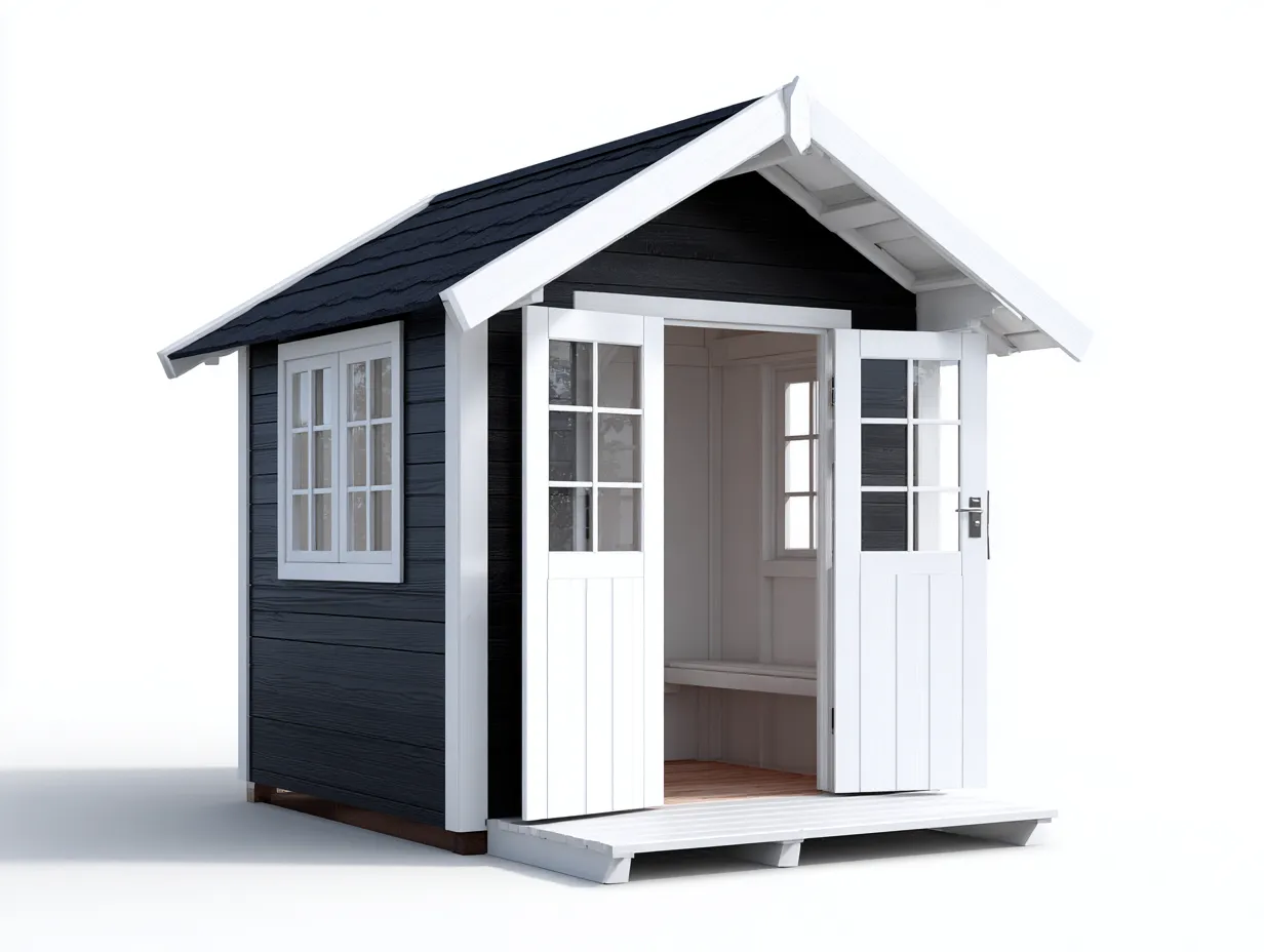Abri de jardin en bois 180x150x220 cm - Bleu foncé et blanc - Rangement extérieur avec portes vitrées