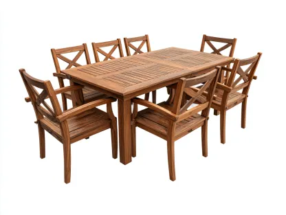 Salon de jardin repas bois 200x100x75 cm - bois naturel - ensemble repas extérieur design classique
