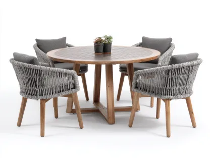 Salon de jardin repas en bois et corde 120x120x75 cm - Gris-Naturel - Ensemble repas extérieur design moderne