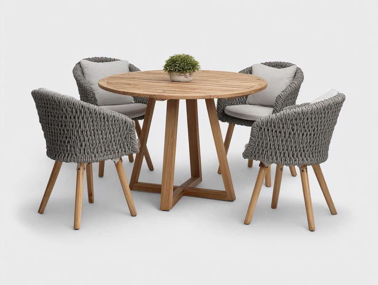 Salon de jardin repas en bois et corde tressée 120x120x75 cm - naturel-gris - ensemble repas extérieur